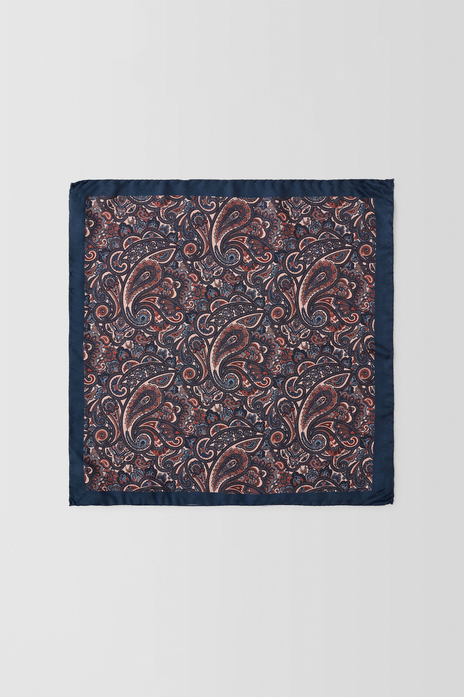 Arriving in a contrast paisley print, this silk pocket square adds a pop of personality to any dark suit. Made for day to night events, try it with a matching tie for a stylish look.