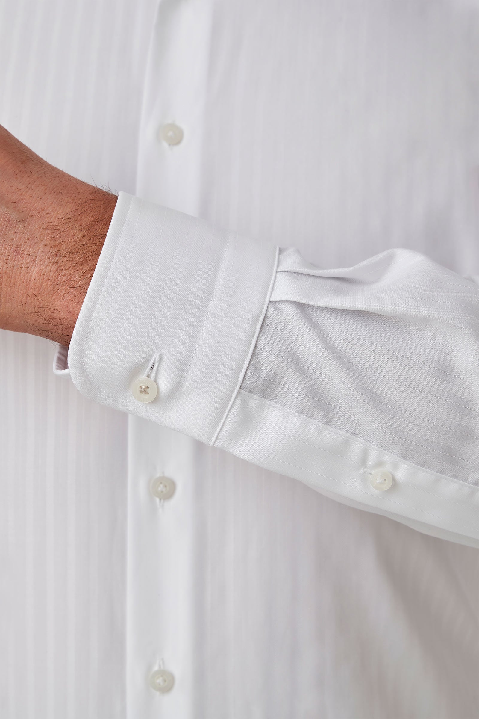 The Sentry Shirt is a wardrobe essential. Crafted thoughtfully to integrate into any wardrobe, this style arrives in a premium Egyptian cotton fabric with a self-stripe texture that is easily dressed up or down.