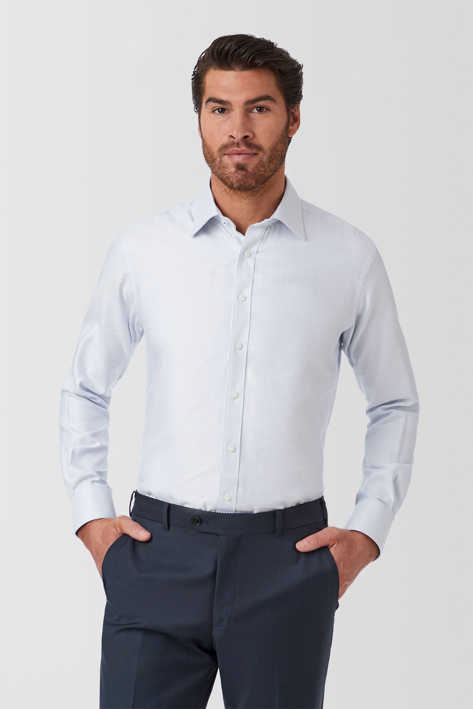 A wardrobe staple, the Frontier Shirt is a classic tailored style that's perfect for weekday wear. Arriving in a premium Egyptian cotton fabrication with a mini stipe texture woven throughout, pair it with neutral trousers for a go-to look.