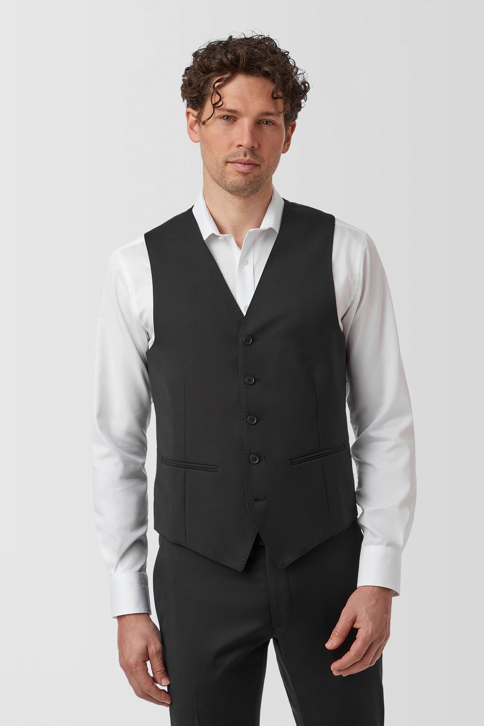 The Kyle vest is a sharply tailored staple that effortlessly completes a three-piece suit. Pair with a tailored jacket and silk accessories for formal or black-tie dress codes.