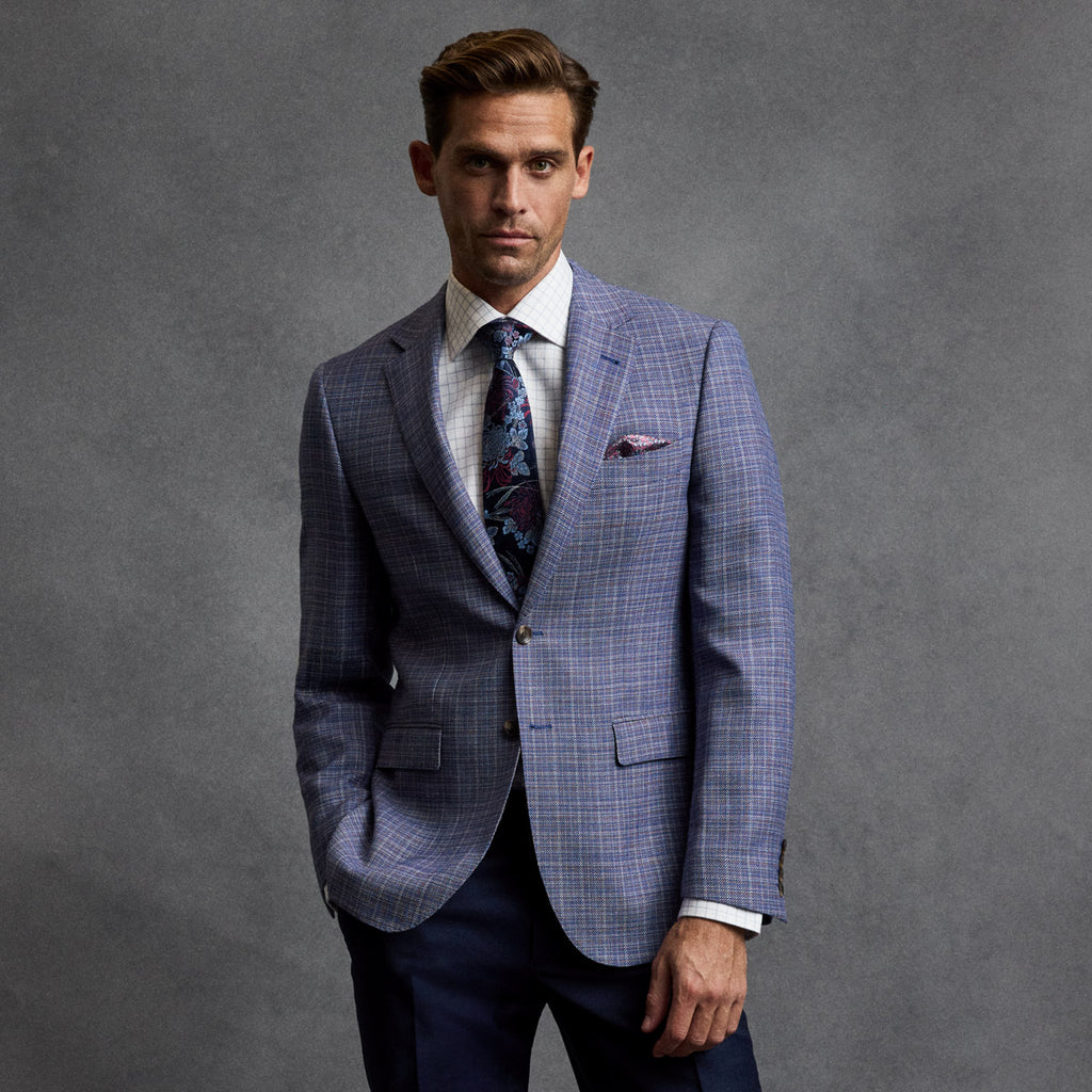 Sitting against timeless overchecks and pinstripes with comfortable natural fibres and textures, this range dares to whisk you away to the summer holiday of your dreams, whether you're at work or your next event.