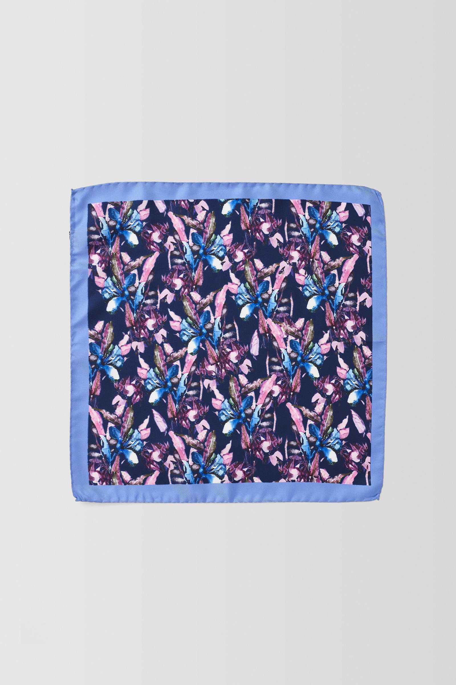 A bold silk pocket square featuring an abstract artistic design for a unique, modern accent.