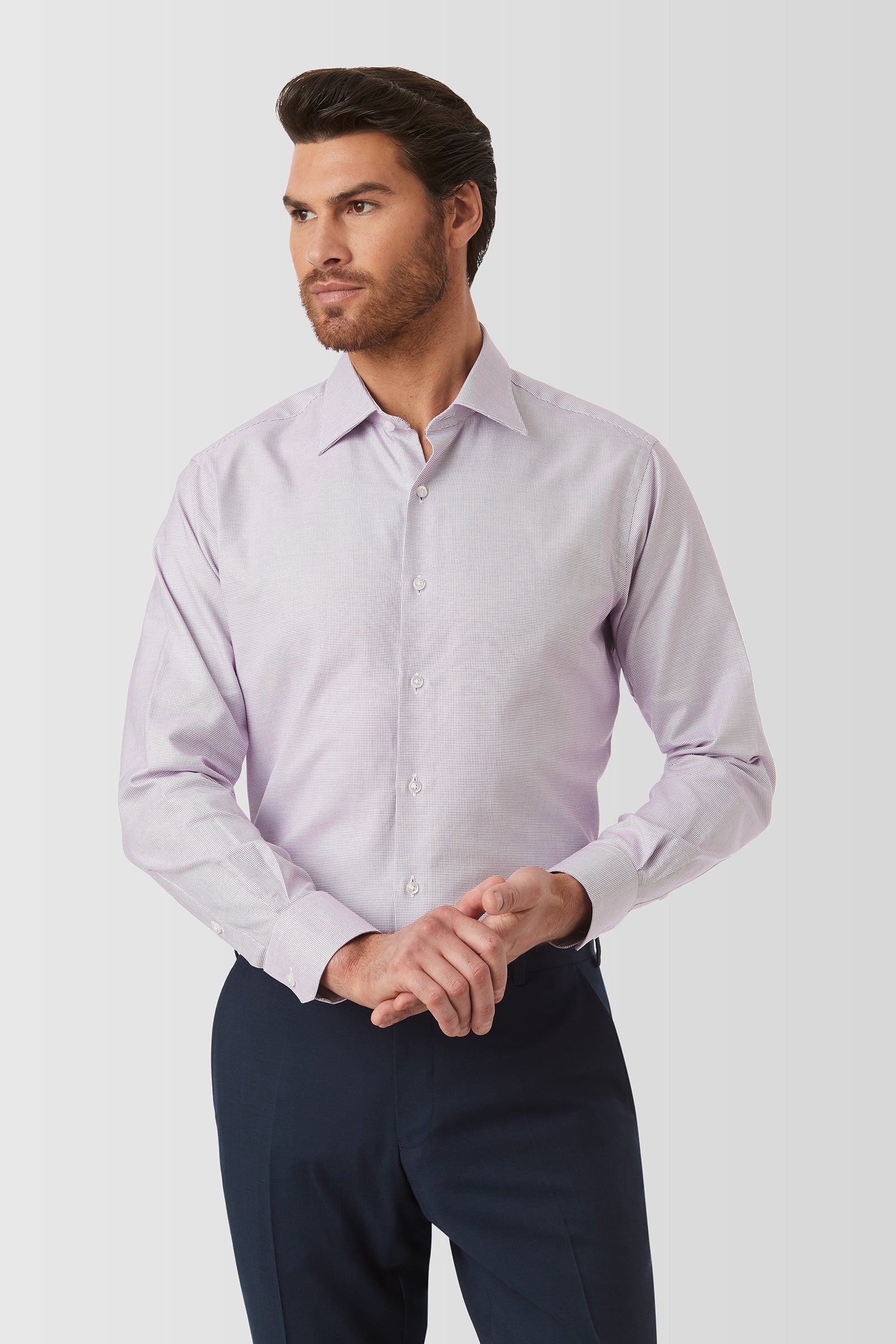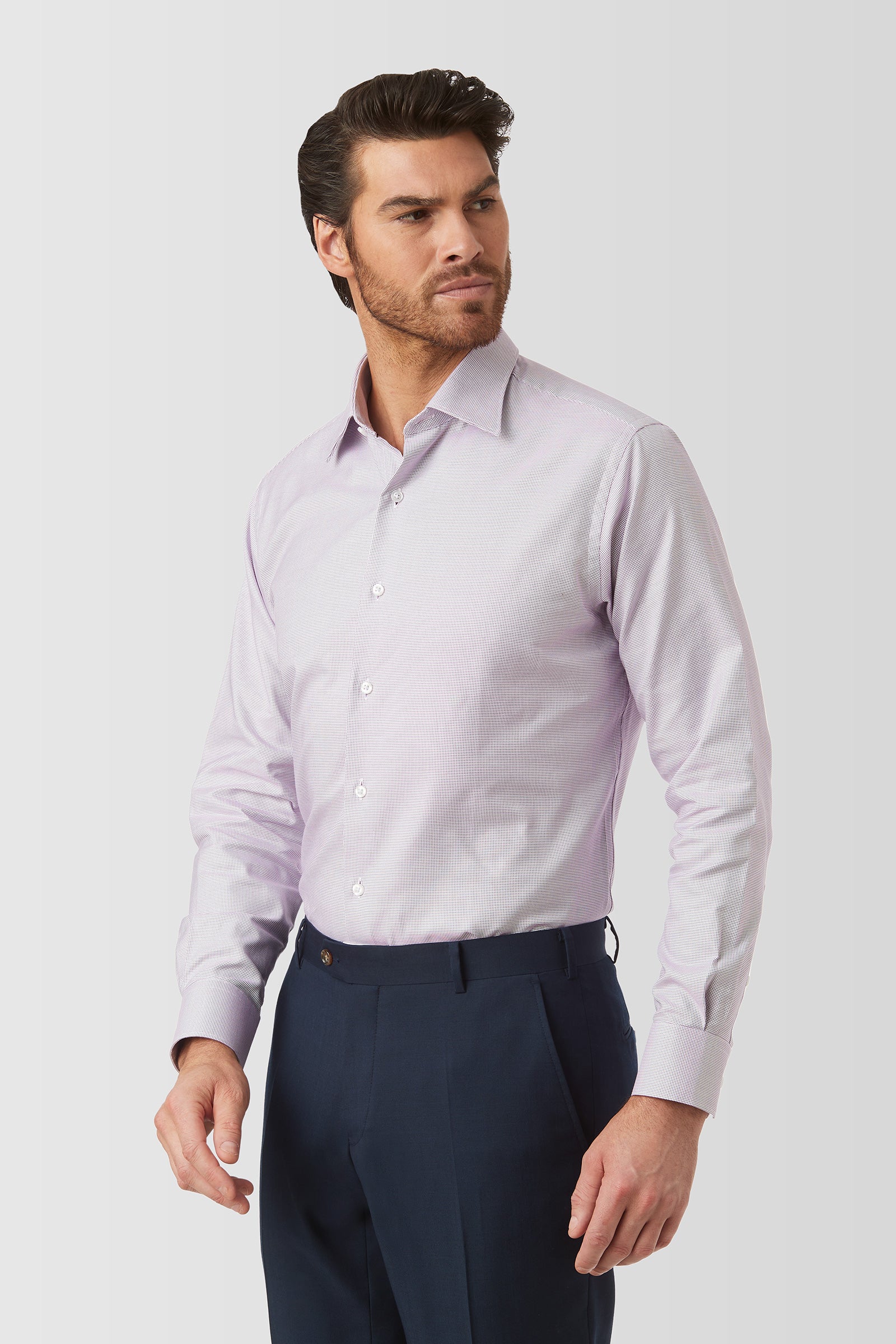 A stylish complement to any wardrobe, the York Shirt is a weekday must-have. Arriving in a luxurious dobby-textured cotton fabric and offering all-day comfort, it's a versatile piece that can be worn with suits or casual attire for every dress code.